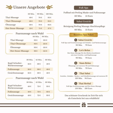 Wer Wellness verschenken möchte, ist bei bei der Bambus Oase Bottrop an der richtigen Adresse. In der Massage Oase stehen Besuchern zahlreiche Wellness- und asiatische Massagen zur Auswahl. Sie können bereits zu Hause entscheiden, ob Sie einen Gutschein für eine Massage verschenken möchten. Schon beim Aussuchen der Wellnessbehandlung oder des Arrangements werden Sie spüren, wie die Vorfreude auf das Verschenken in Ihnen wächst.